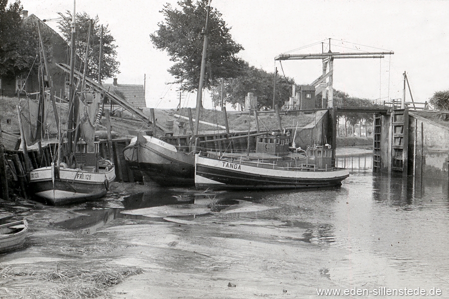 Die Friedrichsschleuse in Carolinensiel war für Arthur Eden weit mehr als ein Bauwerk. Sie markierte einen Übergang zwischen Land und Meer und bot ihm zugleich ein Motiv, in dem sich Atmosphäre, Alltag und Geschichte verdichteten.
