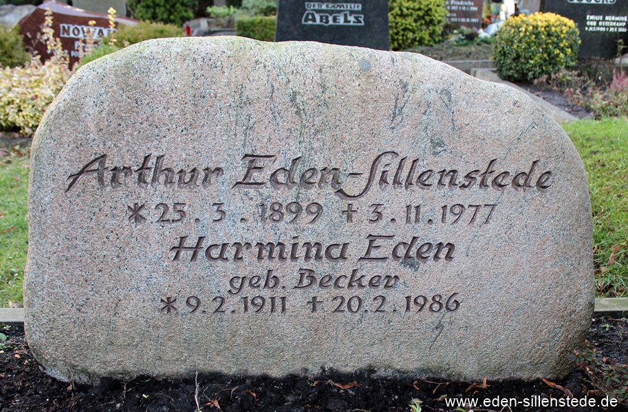 1930 wurde die erste Tochter Irma geboren, 1944 folgte Theda. Über Jahrzehnte blieben Arthur und Harmina einander verbunden. Harmina Eden starb am 20. Februar 1986. Sie ist neben ihrem Ehemann in Sillenstede begraben – ein stiller Hinweis darauf, dass ihre gemeinsame Lebensgeschichte, die in Tammhausen ihren Anfang nahm, auch über den Tod hinaus verbunden bleibt.